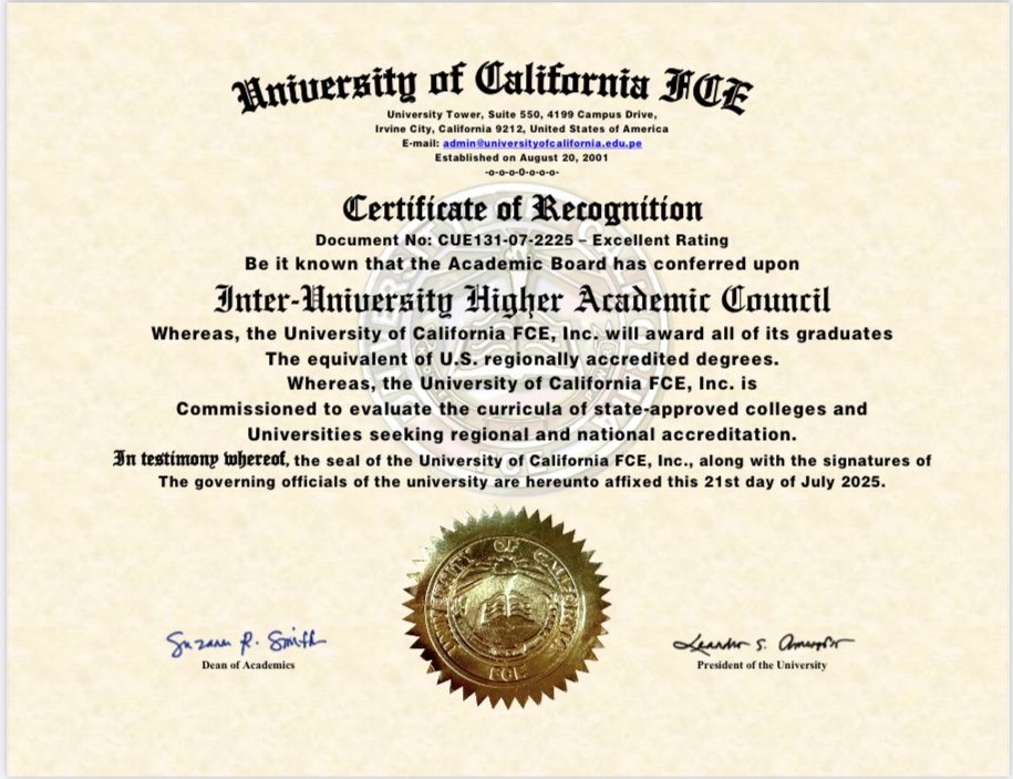 Conformément à l’autorisation du British Council de former des étudiants et des spécialistes pour les examens IELTS et PLAB à Paris IUHAC Inter-University Higher Academic Council accrédité par l’Université de Californie FEC, CA, USA et a obtenu l’évaluation du diplôme aux USA.